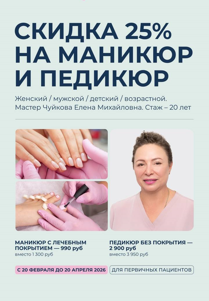 25% скидка на маникюр и педикюр